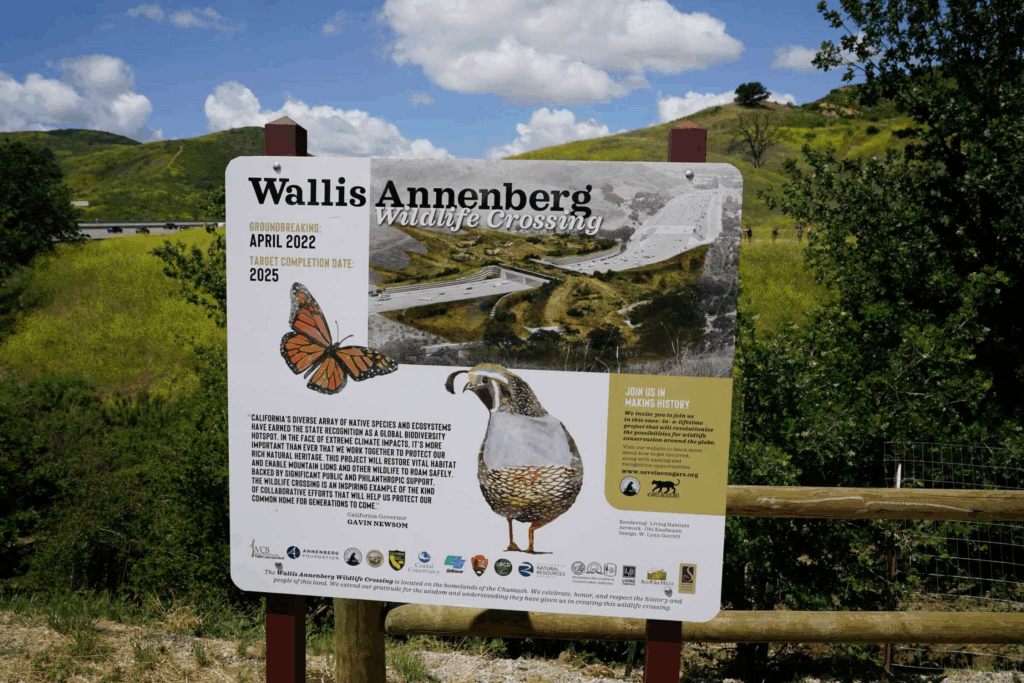 “The Wallis Annenberg Wildlife Crossing will span a 10-lane motorway northwest of Los Angeles, helping mammals including mountain lions, coyotes, and deer to have better access to food and potential mating partners.”